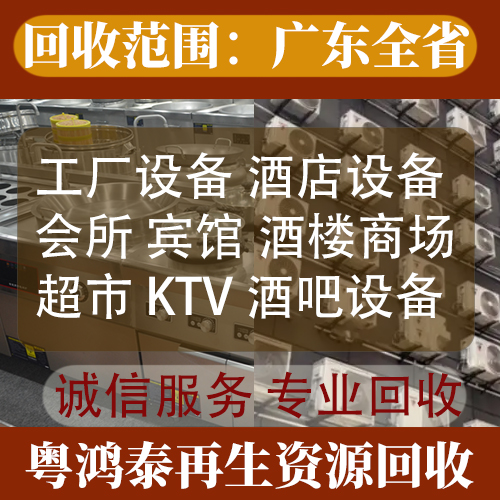 广东深圳鸿泰再生资源,专注再生资源回收领域,在行业内积累了丰富的经验与良好口碑。 一、业务范畴广泛 商业设备回收: 酒店设备回收:无论是客房的家具、电器,还是餐饮区域的厨房设备、餐具等,我们都能专业回收。 酒楼设备回收:从大型的炉灶、冷藏设备,到桌椅板凳、通风系统,鸿泰都能妥善回收处理,为酒楼升级改造排忧解难。 咖啡厅设备回收:咖啡机、烘焙设备、舒适的沙发座椅等,都是我们的回收对象,帮助咖啡厅优化设备配置。 茶餐厅设备回收:快速出餐的厨房设备、特色的餐台餐椅等,我们提供一站式回收服务,让茶餐厅的资源流动起来。 KTV 设备回收:音响设备、点歌系统、沙发茶几等,我们以专业的流程进行回收,为 KTV 的设备更新提供便利。 宾馆、会所设备回收:涵盖客房用品、娱乐设施、办公设备等,满足宾馆和会所多样化的回收需求。 大型商场超市设备回收:货架、收银系统、制冷设备等大型设备,鸿泰凭借专业团队和运输力量,实现高效回收。 工业设备回收: 整厂设备回收:承接各类结业、关闭、搬迁工厂的设备回收,包括生产设备、检测设备、办公设备等,提供整体解决方案。 电力设备回收:发电机、变压器配电柜等电力设备,我们严格按照规范流程回收,确保安全与资源合理利用。 中央空调回收:专业拆除和回收各类中央空调系统,进行环保处理与再利用。 电线电缆回收:无论废旧电线电缆的规格与材质,我们都能准确评估价值并回收,实现金属等资源的循环利用。 二、服务区域广阔 业务覆盖广东全省,无论您在繁华的都市,还是偏远的城镇,只要有回收需求,鸿泰再生资源都能迅速响应,安排专业团队上门服务,为您提供便捷、高效的回收体验。 三、经营理念先进 秉持 “公平公正、诚实守信” 的经营理念,以良好的经营信誉赢得客户信赖。在每一次回收业务中,我们都以公正的价格评估,与客户真诚沟通,实现双方利益最大化,力求建立长期稳定的合作关系。 多年来,鸿泰再生资源与广东等地的众多企业建立了长期合作关系,不断拓展业务领域,提升服务质量。未来,我们将继续致力于再生资源回收事业,为环保事业贡献力量,同时为客户提供更优质、更全面的回收服务。
